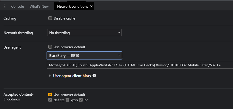 2. Деактировать чек-бокс Use browser default во вкладке User agent: